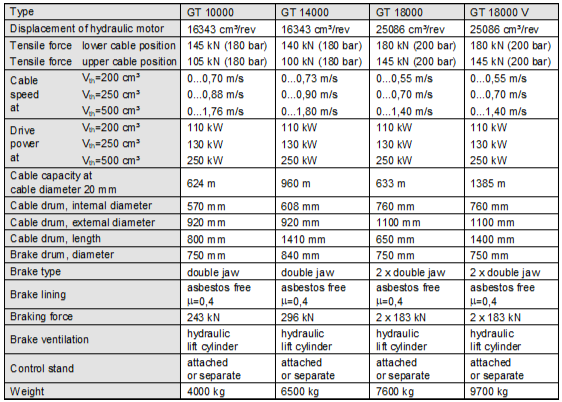 Technical data GT
